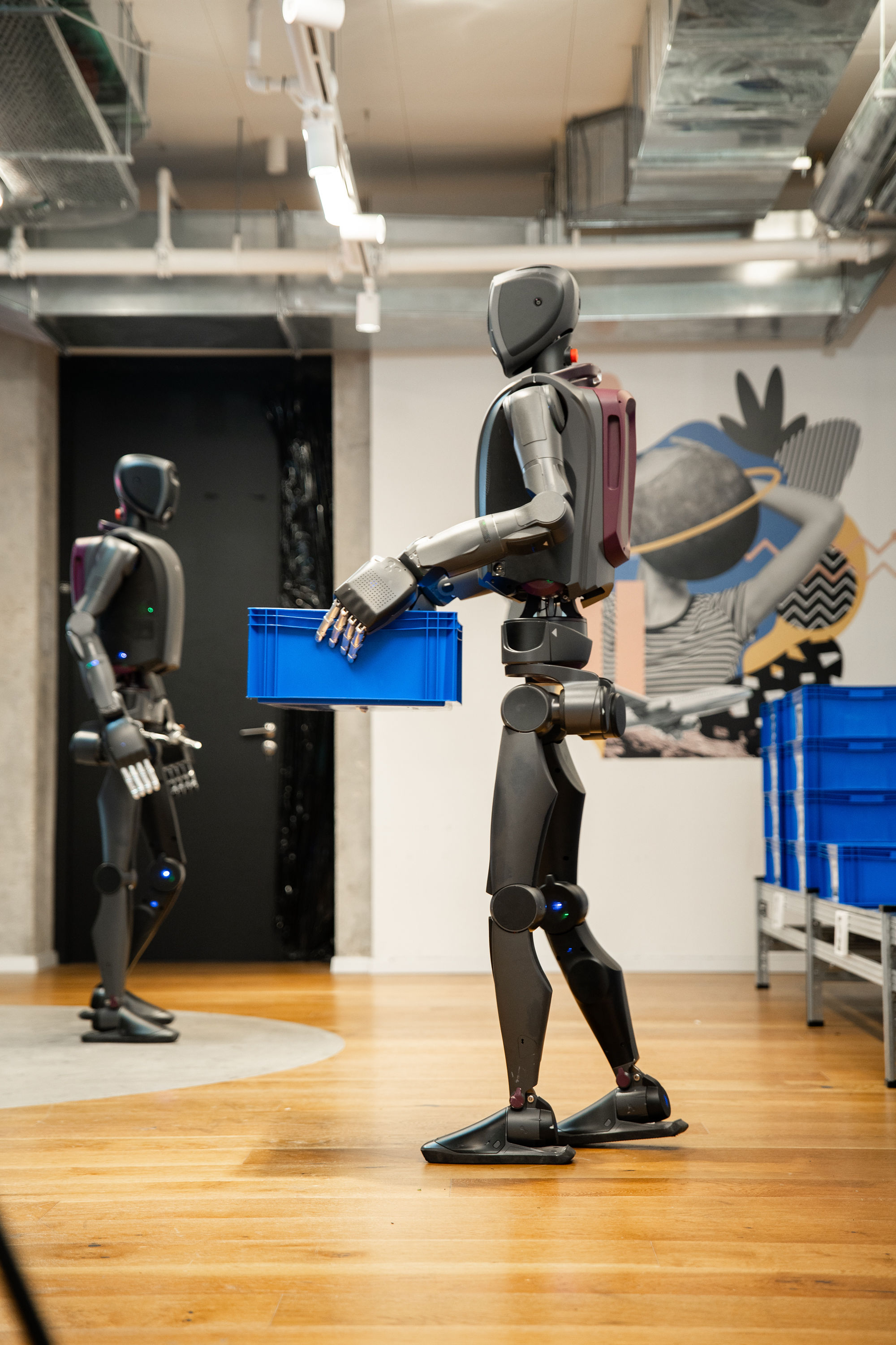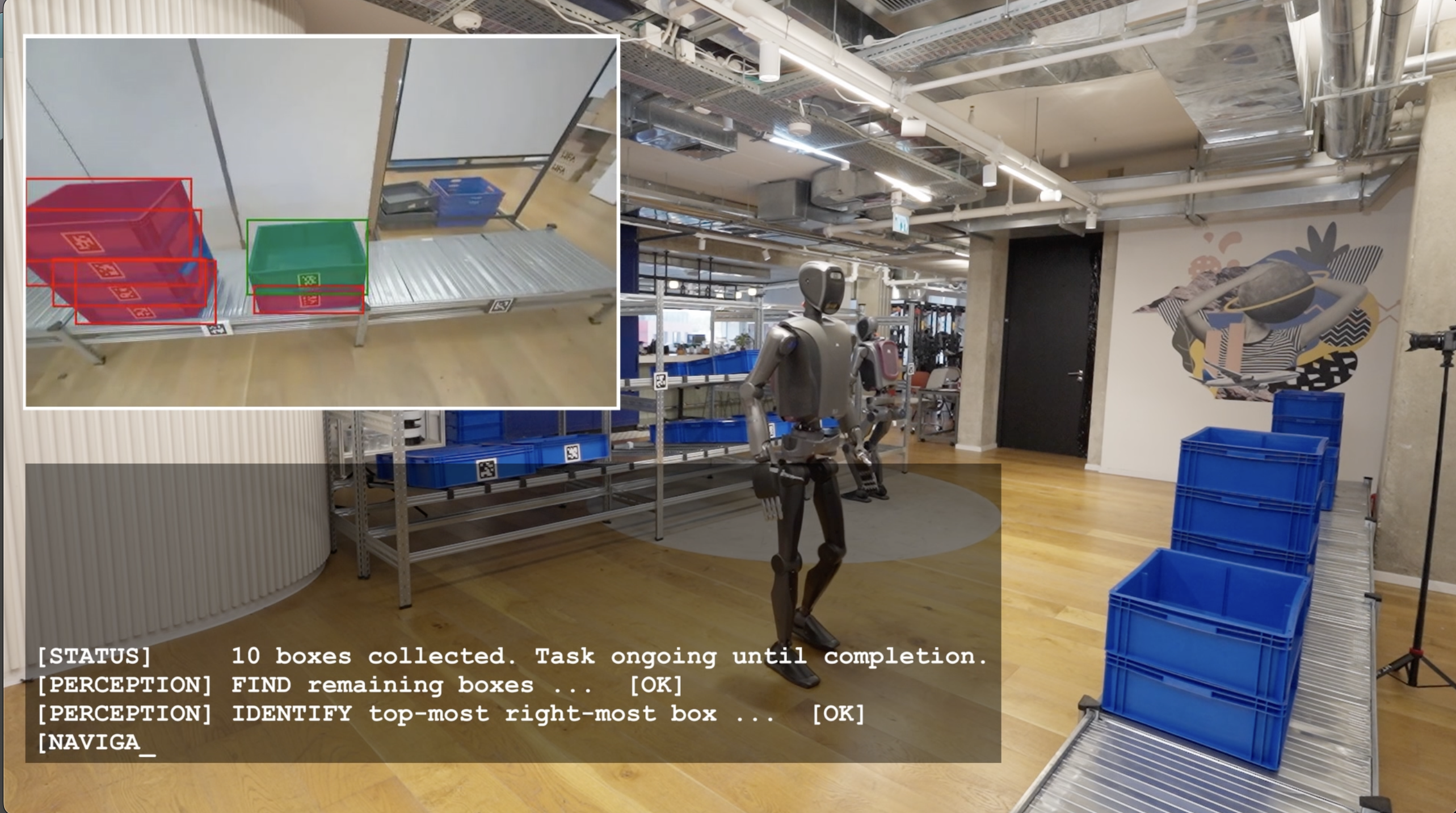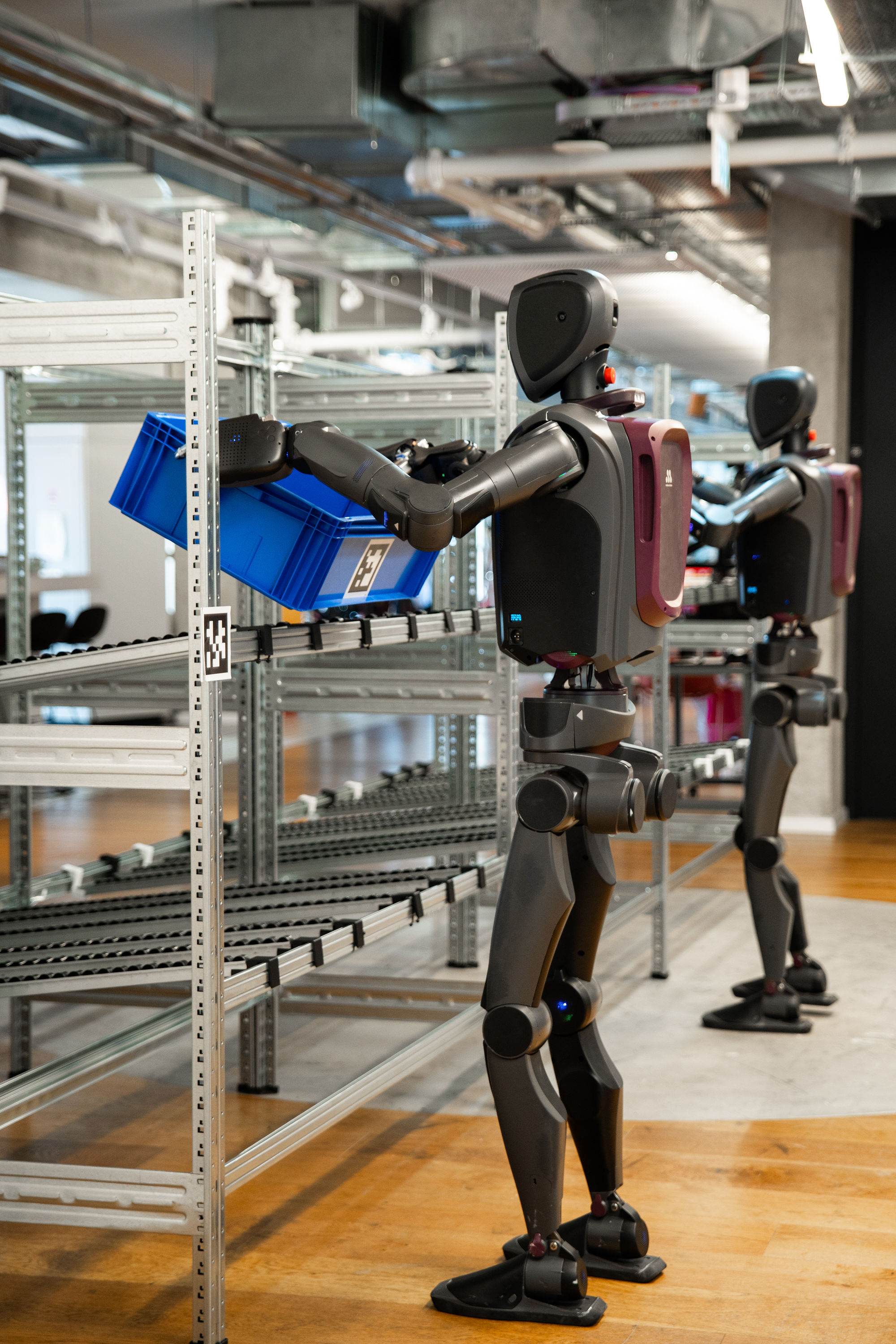 Two MenteeBots Working Together in an Autonomous Warehouse Task